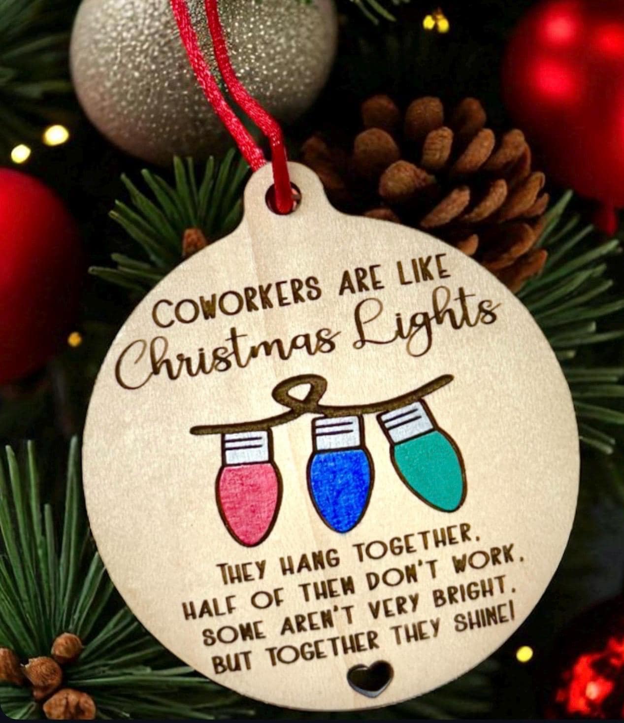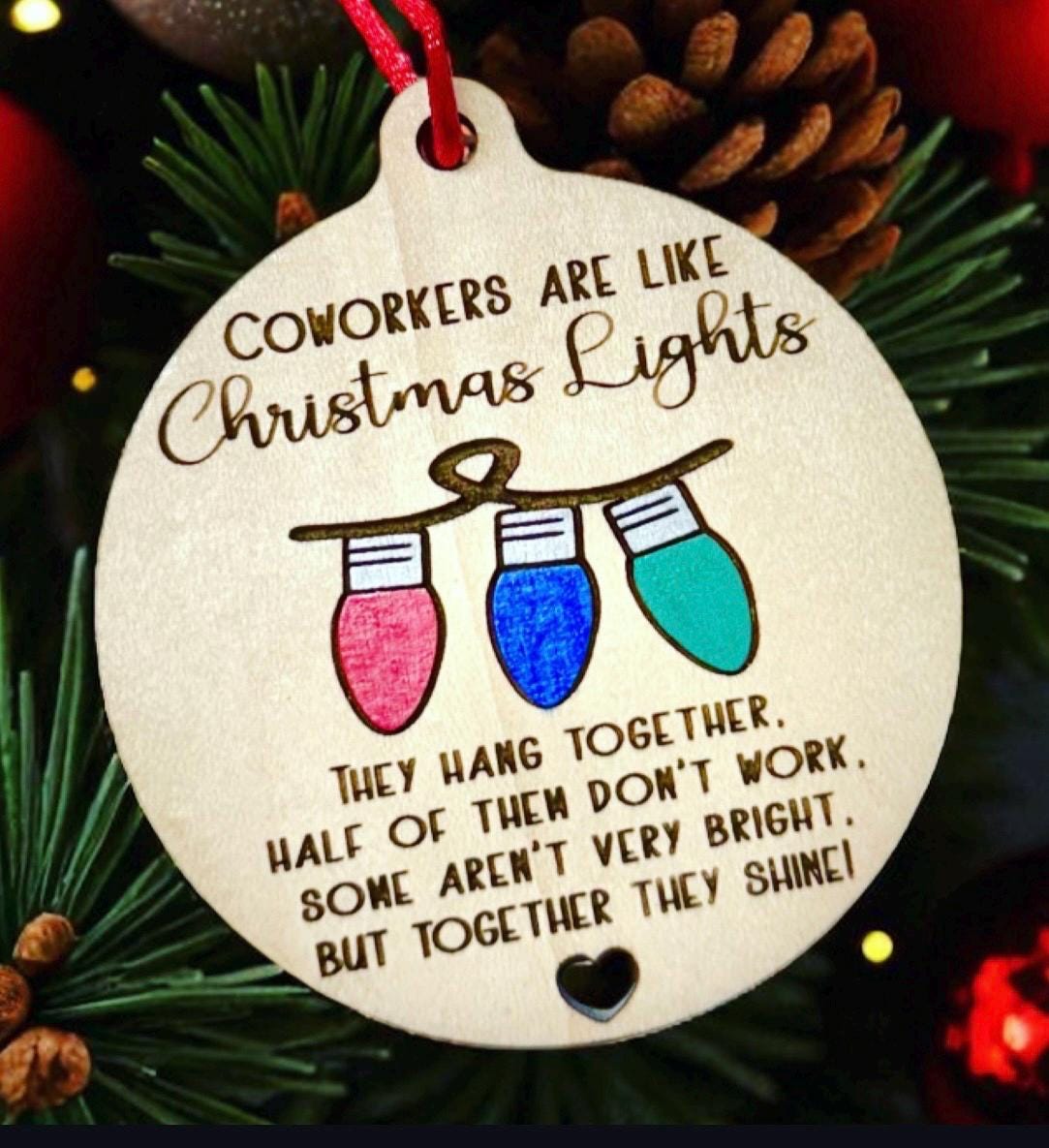 Brighten up your office’s holiday spirit with our hilarious Coworker Christmas ornament! This comical decoration is a perfect fit for your hardworking (or not-so-hardworking) coworkers. Crafted with care and humor, it playfully reminds us that even when some coworkers seem to slack off, when we come together, we shine as a team. Add a touch of laughter to your workspace this holiday season and celebrate the unique camaraderie that makes your workplace special. Make your coworkers smile with this fun and memorable ornament! These ship fast!